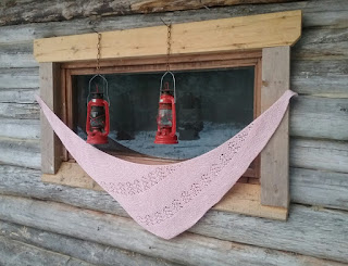 Ehdin lopulta ulos sellaisena hetkenä, kun ei sada vettä tai ole pimeää, ja sain edellisessä postauksessa vilahtaneen huivin kuvattua. Savusaunan räystään alla oli tosin nytkin vähän turhan hämärää.